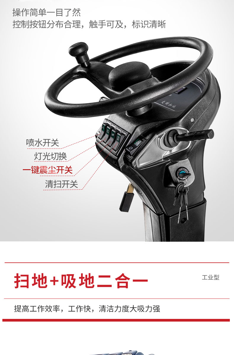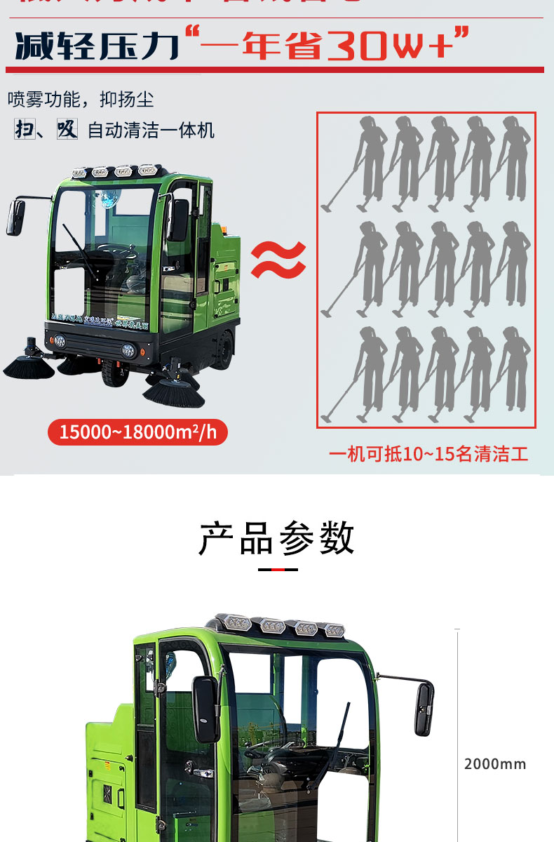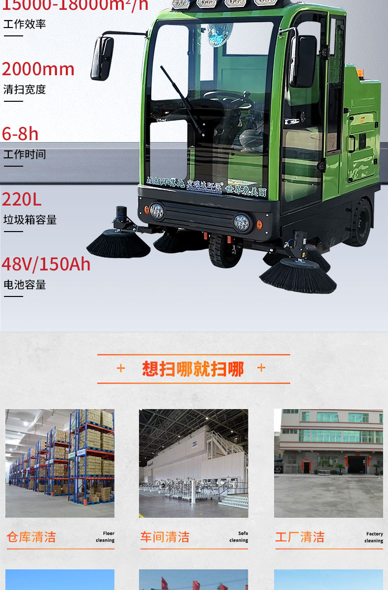 HRD-2000S全封閉駕駛式掃地車配置雙風(fēng)機系統(tǒng),具有強大的吸塵能力,清掃寬度大可達2米,一小時工作量相當(dāng)于6-8名清潔工的工作量,可連續(xù)工作6-8小時,特別適合煤礦、水泥廠、雕刻廠、面粉廠、建材廠、金屬冶煉廠、工廠車間、商場、車站、廣場公園、景區(qū)等場所使用。