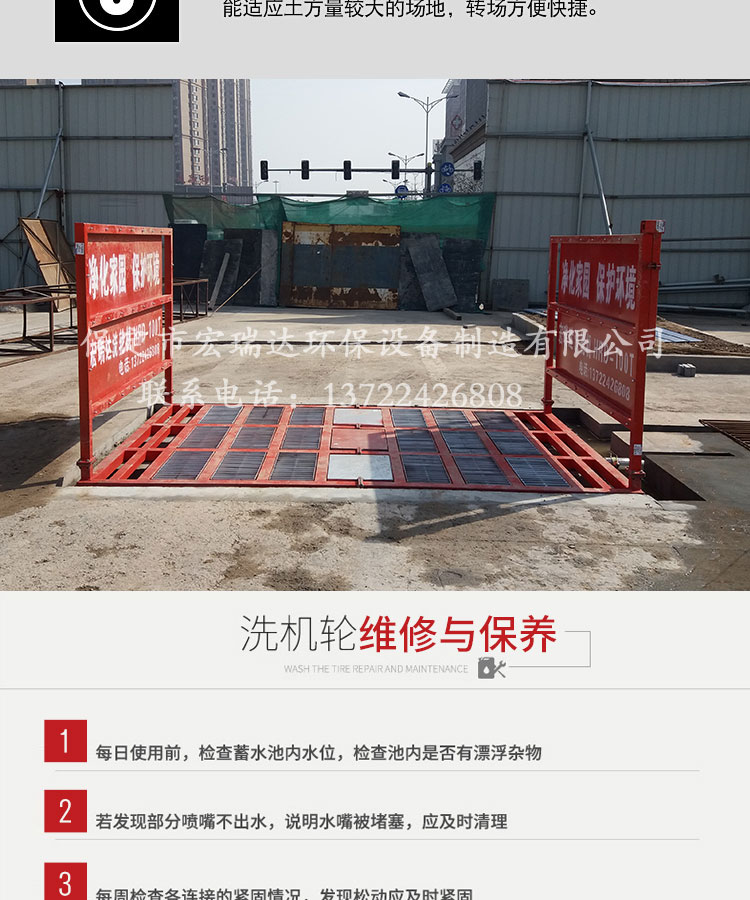 - HRD-101工程車洗輪機可自動完成沖洗、排泥的工作,沖洗用水可重復使用,100T以下各類工程車和垃圾運輸車都可以承載,有自動、遙控和手動三種控制,特別適用于各類建筑工地、礦業工場、水泥制品廠、煤礦、發電廠、垃圾填埋廠、高檔社區等場所的進出車輛清洗,從而達到無粉塵污染的優良工程,二期安裝運輸方便,可適用各種工地頻繁轉場的需要。